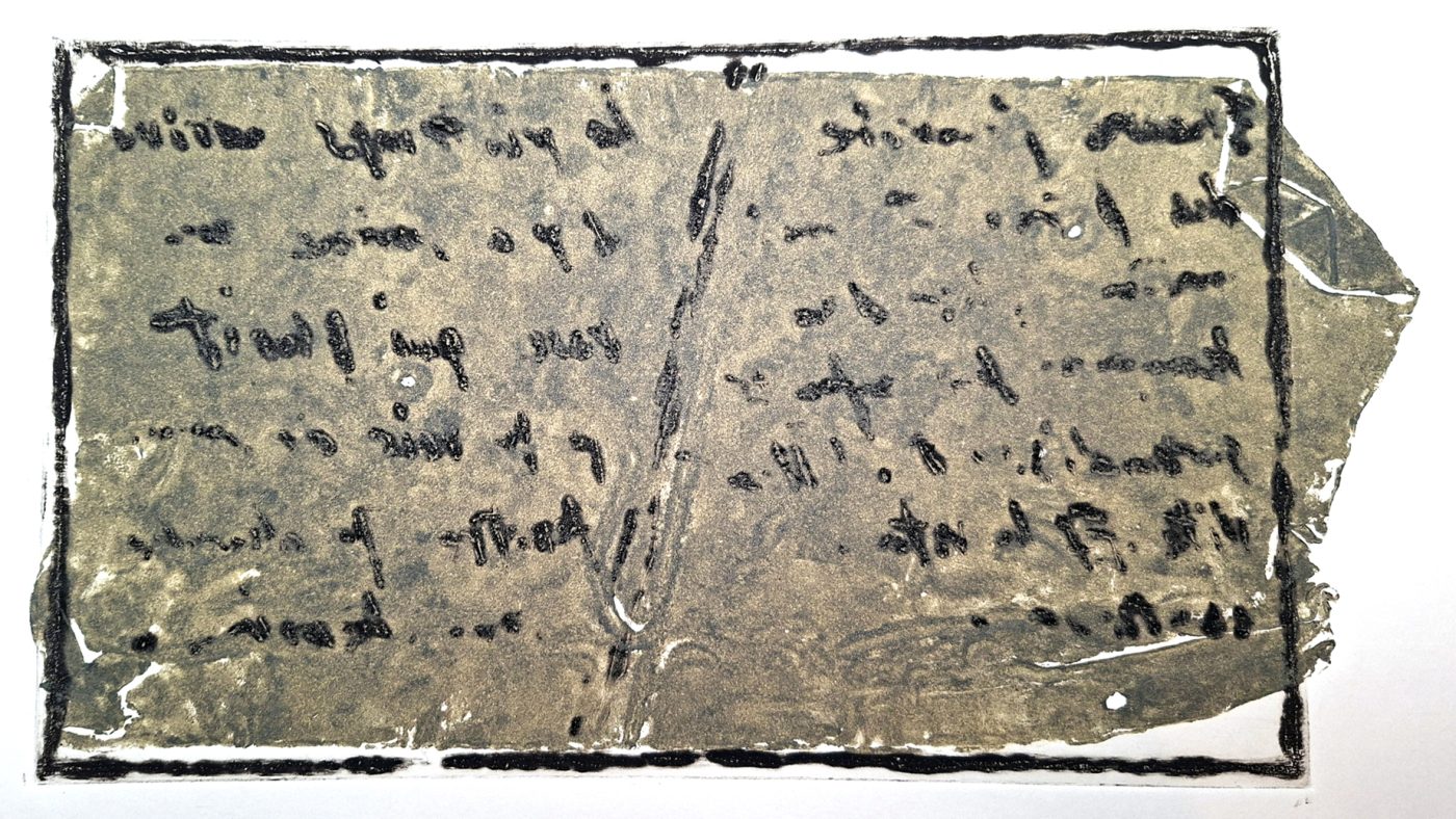 Lead plate inked in clay color printed wet in wet over a zinc plate carborundum plate